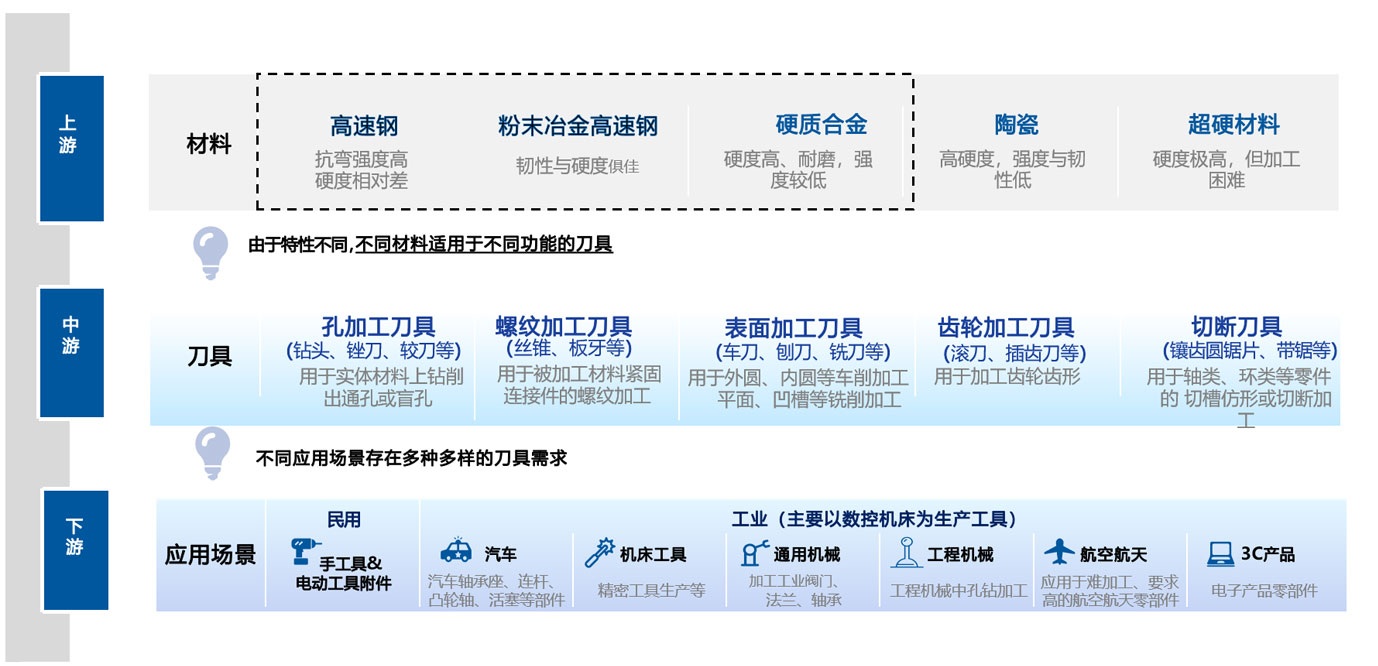 硬质合金刀具涵盖整体硬质合金立铣刀钻头、铰刀、成型刀、高光刀等。产品广泛应用于合金钢、模具钢、铜、铝以及不锈钢、高温合金、钛合金、高强度钢、碳纤维等材料的加工,以及航空、航天、汽车、高速列车、石油化工、机械加工、医疗器械、军工等不同领域。